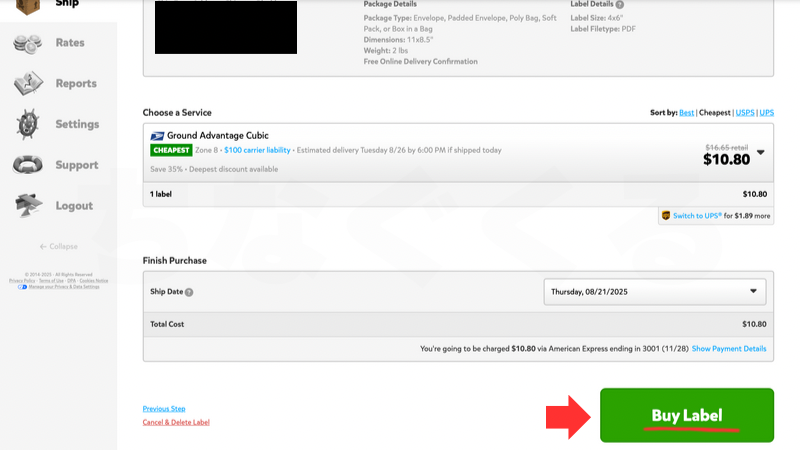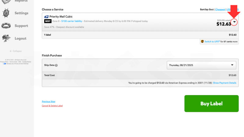 「Buy Label」(ラベルを購入する)をクリック