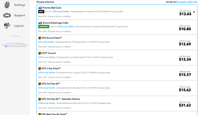USPS(アメリカ郵便局)やUPSと提携していて、個人でも商業契約料金(Commercial Pricing)を使えるのが大きな特徴です。