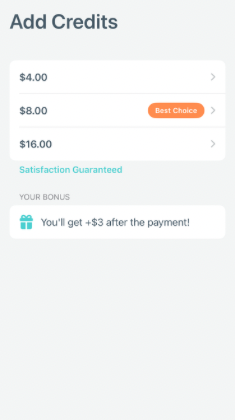 Add Creditsをタップしてチャージする金額を選んで支払い。ちなみに$4チャージで携帯電話へ最大60分・固定電話へ最大121分通話ができます。